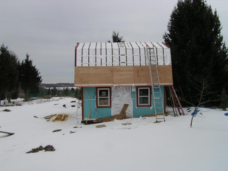 A solar powered gable attic fan turned on it's "side" - when the sun comes out this fan sucks air through the 3/4" air gap which is under the entire roof.