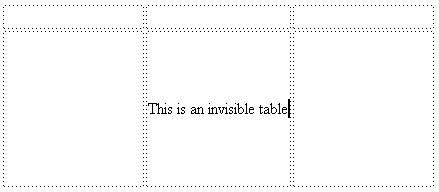 This is a sample layout using an invisible table. Below I show you the same table, but with the border size set to 1. The border size set to 0 causes the table to be invisible, like this one. |