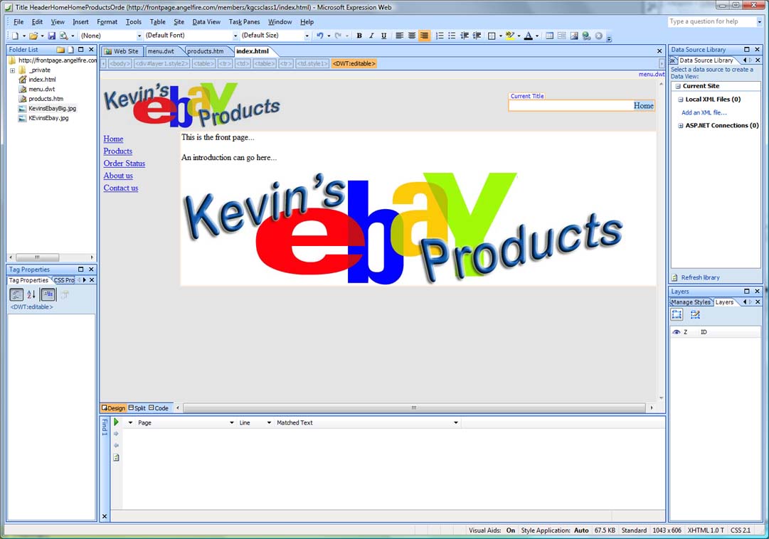 A snap shot of the Expression editor in the midst of editing a live site using "Templates":