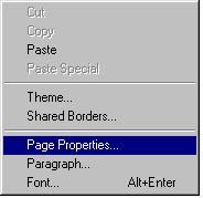 Earlier in this document we discussed setting the keywords and description of a web page using the raw HTML coding method and the <META> tag. With FrontPage editor you may do that same thing using the graphical user interface of the program. This is useful for search engines when they come across your site and index it in their database. Anywhere on your page right mouse click and on the menu that pops up select Pare Properties. When the Page Properties window comes up, select the Custom tab.